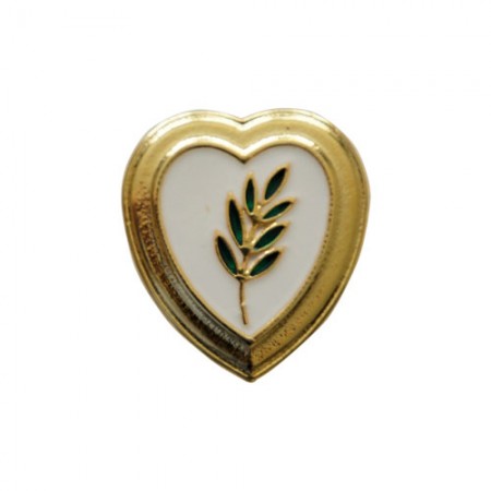 Boton coração com folha de acácia fundo branco dourado.